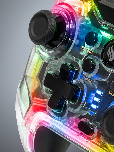 O visual transparente revela os detalhes internos e ganha vida com o efeito Neon RGB, criando um espetáculo visual que acompanha sua performance. Ideal para setups gamers modernos, o controle entrega muito mais do que jogabilidade, entrega personalidade!