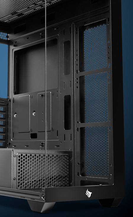 Compatível com placas-mãe ATX, Micro-ATX e Mini-ITX, o Pouter 4B oferece um espaço interno generoso, suportando GPUs de até 400mm e cooler de CPU com até 165mm de altura. Com 7 slots de expansão, 2 baias para HDs de 3,5” e 3 para SSDs de 2,5”, além de diversas opções de montagem para ventoinhas e radiadores, esse gabinete está pronto para evoluir junto com você!