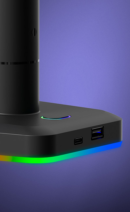 Compatível com monitores de 17″ a 42″ até 15kg, instalação fácil por perfuração (Grommet) ou morsa tipo C, placa VESA de liberação rápida que garante encaixe e remoção ágeis da tela, deixando a montagem sem complicação. Com portas USB 2.0 e Tipo-C para conectividade total direto no suporte, o HL110 RGB é potência que sustenta sua performance!